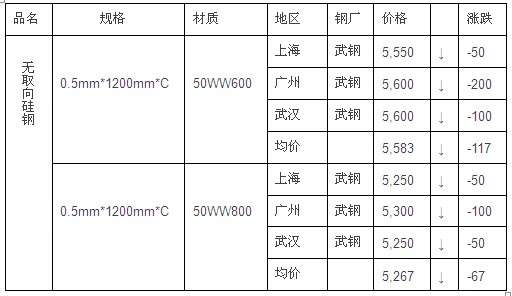 07月11日中国硅钢市场价格行情