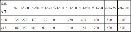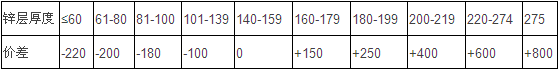 2、锌层加价幅度进行如下调整:单位g/㎡;mm;元/吨