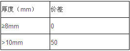 3、所有产品的厚度规格间价差进行如下调整:单位:mm;元/吨