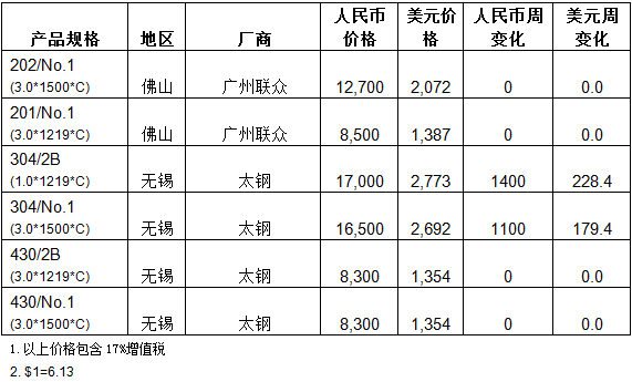 本周LME镍价出现大幅飙涨,内外盘呼应给市场带来了极大信心。受LME镍价刺激,本周国内不锈钢市场看涨气氛明显,钢厂也成为价格上涨的主要推手。电子盘冷轧价格近几日涨幅明显,对冷轧现货价格也起到支撑。本周无锡市场304冷热卷价格大幅拉涨,价格已累计上涨800-1500元/吨。在价格不断上涨的同时,钢厂趁机封盘,锁价订货停止,给市场也带来极大支撑利好。下周LME镍价或将出现小调整,上涨过快,内部回调压力增大.国内不锈钢价格也预计会放缓上涨的步伐.