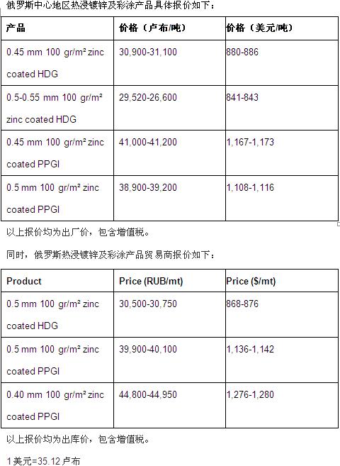 SteelOrbis全球钢铁网获悉,俄罗斯扁平材厂商开始3月份热浸镀锌及彩涂产品的交易活动。尽管目前俄罗斯国内因卢布贬值,厂商力保价格不出现下滑,而产能趋于高位,预计未来市场需求有望回升。