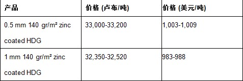 俄罗斯中部地区经销商的热浸镀锌价格如下: