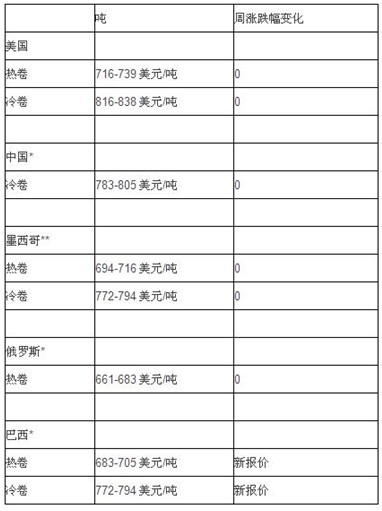 因此,661-683美元/吨,DDP转载卡车,美国海湾港,与上周持平,相比之下,这一报价很具吸引力,但这并不足以说服大部分美国买家来冒此险。如预期一样,那些想从国外采购少量货物的买家正考虑其他的选择,比如巴西,其热卷和冷卷报价比美国国内报价低44美元/吨。