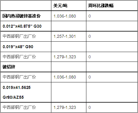 近一周来,美国国内热浸镀锌现货价一直维持稳定,部分进口价有所下调。