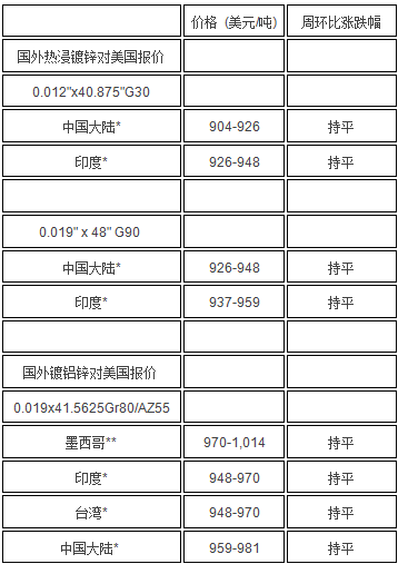 随着全球原料成本上涨,国外热浸镀锌卷和镀铝锌卷对美国的报价预计将持续上行。SteelOrbis全球钢铁网获悉,由于铁矿石成本走高,中国大陆资源对美国的报价可能迎来新一轮的上调。然而一周前该报价已经上涨11-22美元/吨,并且中国钢厂方面没有放宽价格的迹象。
