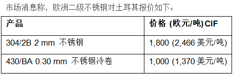 欧洲二级不锈钢对土耳其报价