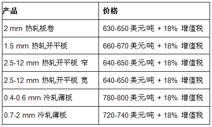 贸易商报Erdemir生产的扁平材价格在土耳其Ereğli地区如下: