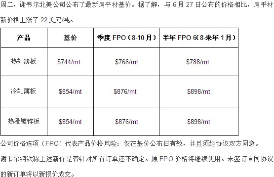07月02日 | 扁平材和板坯价格