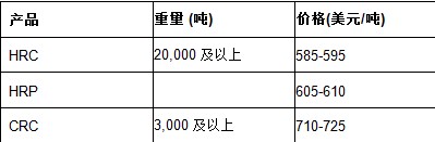 谢韦尔冷热轧卷以及热轧中厚板对土耳其的报价如下: