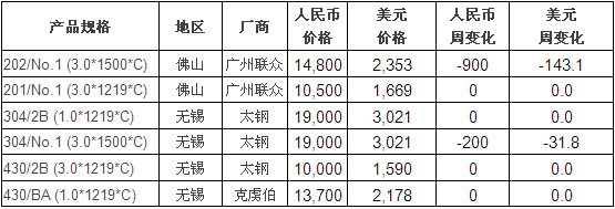 中国市场不锈钢价格行情