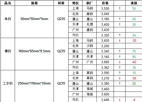 中国型材市场各地涨跌不一