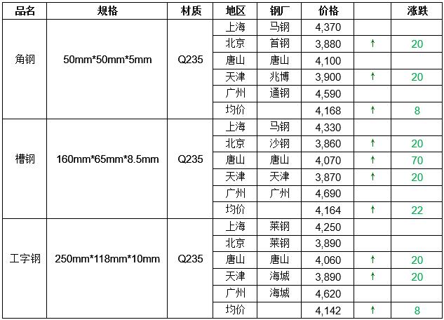 8月19日中国型材市场价格行情