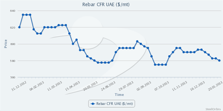 另一方面,阿联酋买家认为,因废钢报价下滑,土耳其螺纹钢出口报价或将下跌至低于580美元/吨(CFR),理重。为达到预期,阿联酋买家开始对土耳其螺纹钢厂商施压以求降价。一位土耳其厂商出售5万吨螺纹钢至阿联酋,成交价为580-585美元/吨(CFR),2月出运,买家现在发现该报价偏高。