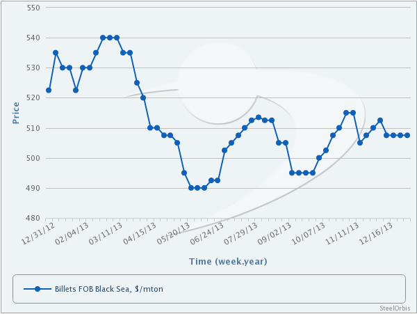 据悉,截止1月13日,圣诞及新年假期结束后,独联体方坯钢厂还未公布其最新出口报价。然而新年前其报价为505-510美元/吨(FOB)。预计独联体二月产方坯出口价格不会下滑,究其原因,主要是国际废钢价格持续走强。而由于需求增长,独联体方坯产商预计将维持其节后报价不变。