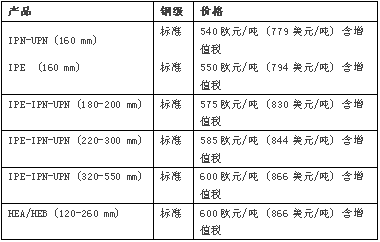 6月14日,土耳其钢铁制造商Kardemir宣布国内市场型材价格不变,较6月7号价格没有变化。具体价格如下:1欧元 = 1.443美元