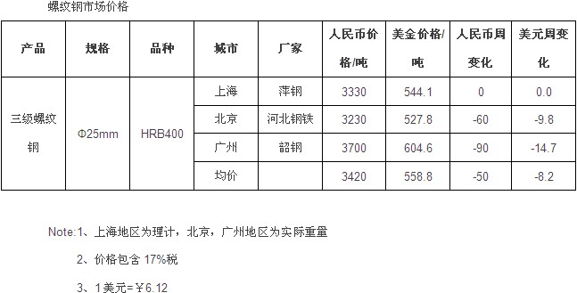 首页 > 国际钢价 > 钢铁价格和市场分析 > 长材及方坯 > 螺纹钢...