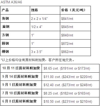 纽柯于本周三晚些时候宣布,从10月11日起的所有中小型材和结构钢订单的原材料附加费将调整为191美元/吨,较9月14日下跌了52美元/吨。