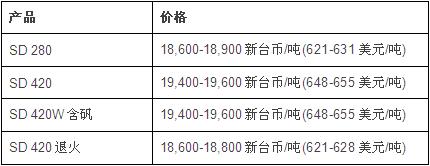 同时,当地螺纹钢售价本周环比下跌200-300新台币/吨(7-10美元/吨),具体如下: