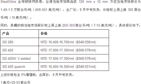 08月09日 | 长材和方坯价格