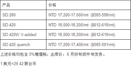 同时,其螺纹钢当地市场报价较上周下滑100新台币/吨(3美元/吨),具体如下: