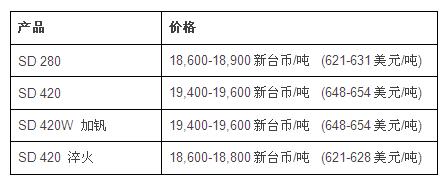 同时,台湾市场螺纹钢报价与上周持平,报价情况如下: