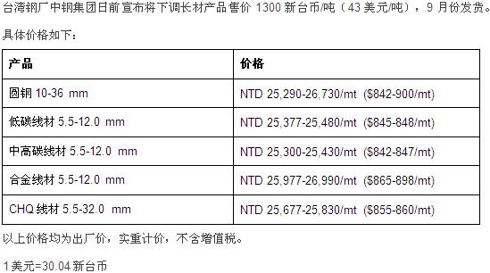 台湾中钢下调长材价