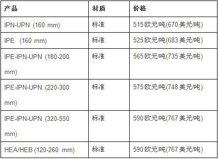12月15日,土耳其Kardemir钢厂宣布最新型材内销价,价格与12月13日持平。具体如下:
