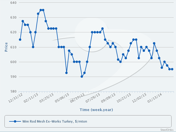 SteelOrbis全球钢铁网获悉,土耳其6-7毫米网用线材本土报价如下: