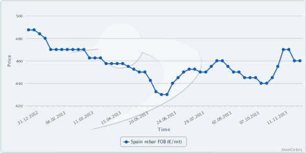 SteelOrbis全球钢铁网获悉,西班牙螺纹钢出口报价自上周起就持稳,即460-470欧元/吨(630-644美元/吨),FOB。市场来源表示,西班牙螺纹钢厂意图上调价格,但目前尚未成功。12月产资源销售已全部完成,而目前,国外螺纹钢买家的库存量充足,导致出口市场成交减缓。