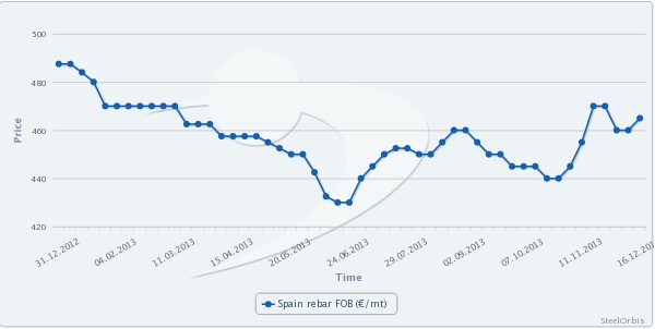 同时,西班牙螺纹钢出口报价为465-470欧元/吨(632-639美元/吨),FOB,与上周相比价格上涨5欧元/吨(7美元/吨)。业内人士表示,由于临近年末,买家库存水平较高,因此西班牙螺纹钢市场的采购活动减缓。