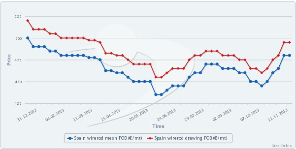 SteelOrbis全球钢铁网获悉,目前,西班牙市场,当地产线材的价格为495-500欧元/吨(673-680美元/吨),客户所在地交货,与上周相比价格上涨5欧元/吨(7美元/吨)。