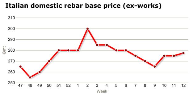 目前,意大利国内市场螺纹钢基价为275-280欧元/吨(366-372美元/吨,出厂价),与上周持平。大部分钢厂已宣布将价格上调10欧元/吨(13美元/吨),下周初开始生效,该消息未引起市场的明显波动。对于市场消费量的贫乏、大订单的匮乏以及建筑项目过少,贸易商们颇有微词。这些天,钢厂拒绝了多批来自破产客户的订单,由于缺少抵押物,钢厂不得已而为之。