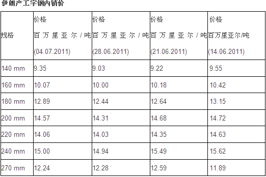 近几周,伊朗市场多数U型钢价格均一路下滑。其中,伊朗和俄罗斯产80-160 mm U型钢售价在960-7788万里亚尔/吨(约900-1110美元/吨,德黑兰出库价),低于上周的970-1200万里亚尔/吨(910-1120美元/吨)和4周前的984-1370万里亚尔/吨(约920-1,280美元/吨)。由于当地钢厂U型钢产量不大,伊朗市场U型钢需求主要由独联体进口资源满足。