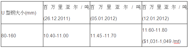 俄罗斯U型钢价格行情(德黑兰出库价,含税)