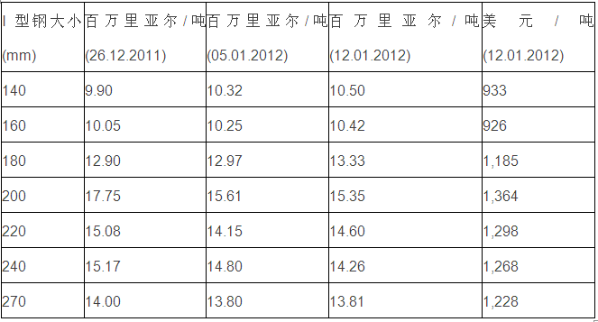伊朗I型钢价格行情(德黑兰出库价,含税)