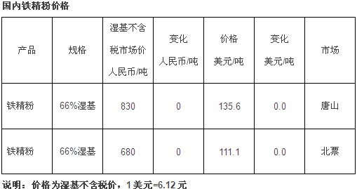 国内铁精粉价格