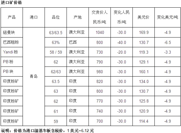 首页 > 国际钢价 > 钢铁价格和市场分析 > 废钢 & 原材料 > 进口矿...