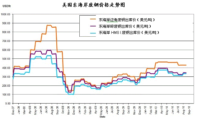东海岸方面,目前,美国边角废钢价格在413-423美元/吨,碎废钢价格在335-345美元/吨,HMS I废钢价格在325-335美元/吨。据悉,部分碎废钢资源报价在369美元/吨,较8月初价格上涨20美元/吨。