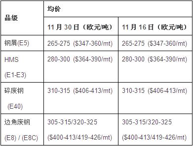 11月上半月起,意大利废钢市场结束了10月下半月开始出现的反弹行情,当前价格维持在11月16日的水平。经销商表示,目前原材料供应紧张,钢厂需求相对活跃。当前意大利废钢价格如下: