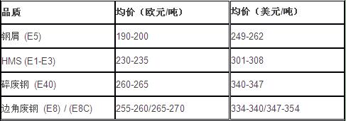 截至6月21日,意大利国内市场废钢价格如下: