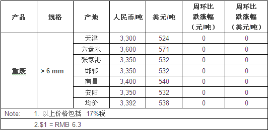 截止收稿,本周我国主要废钢交易市场的重废均价为3392元/吨(538$/t),较上周基本持平。