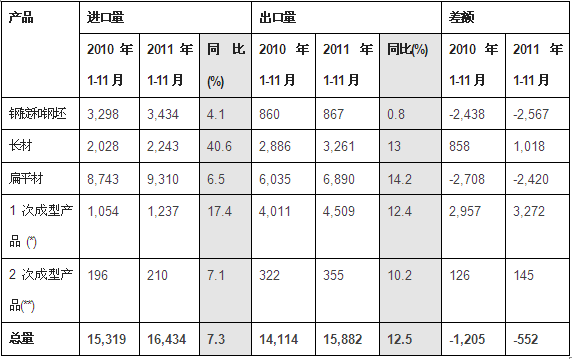 根据意大利钢铁生产商协会Federacciai,2011年前11个月意大利钢铁进口量共计1643万吨,同比升7.3%,而该时段钢铁出口量达1588万吨,同比升12.5%。