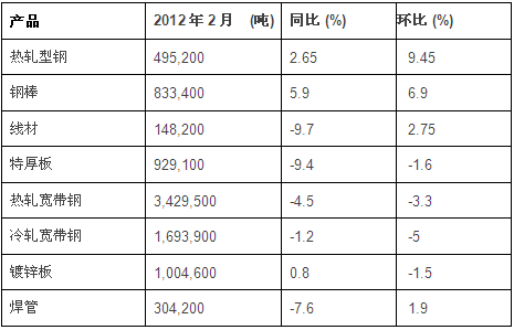 2012年2月日本钢铁产品产量:
