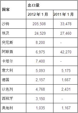2012年1月份,土耳其前十大方坯出口目的地如下: