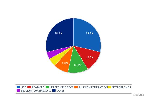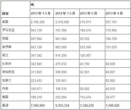 前五个月,土耳其前十大废钢进口量资源国如下: