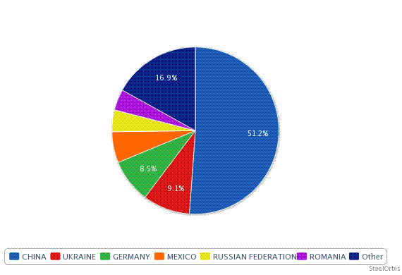 一季度,土耳其从独联体进口无缝管6,517吨,维持自去年第三季度以来的下降趋势,降至2009年一季度以来的最低。同期,土耳其从欧盟进口无缝管12,805吨,环比下降20%,同比下降8.7%;从中国进口无缝管24,609吨,环比下降12.6%,同比增长1倍。土耳其从中国进口无缝管占其总进口量的比例逐渐增加,2011年为32.8%,2012年为47.7%。